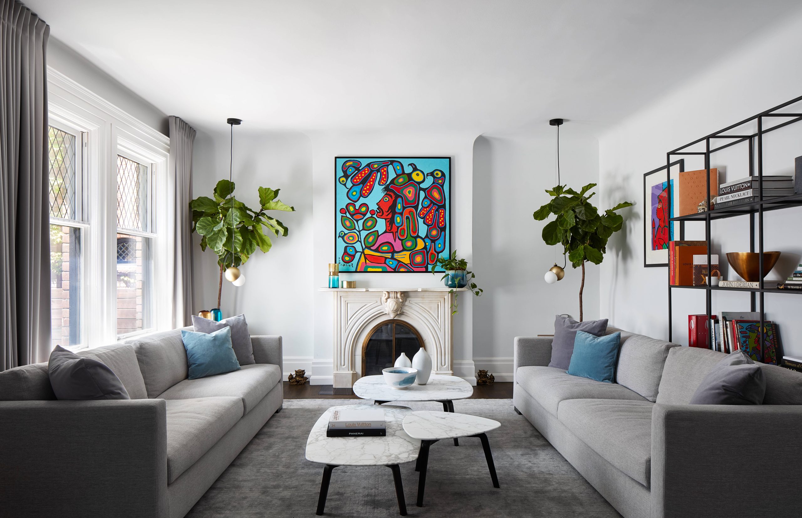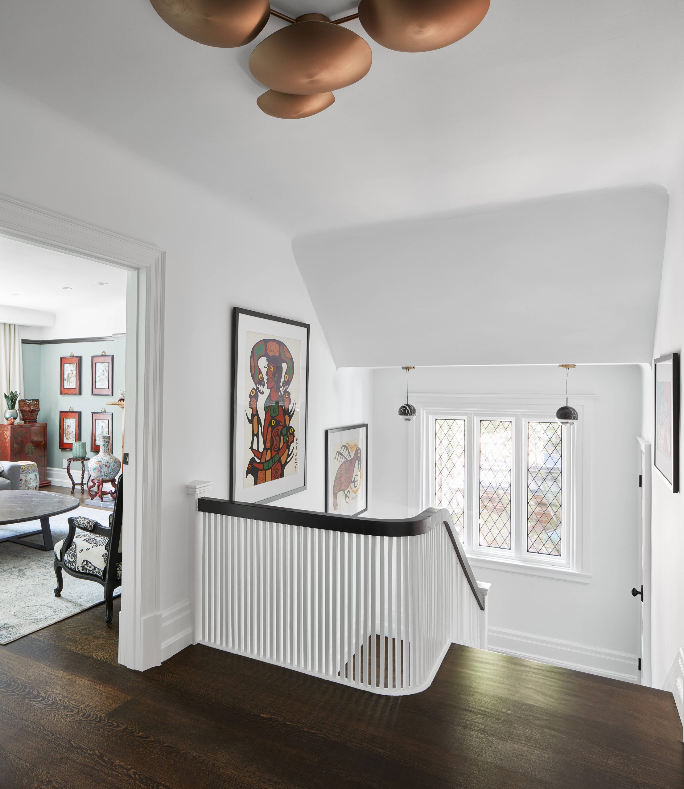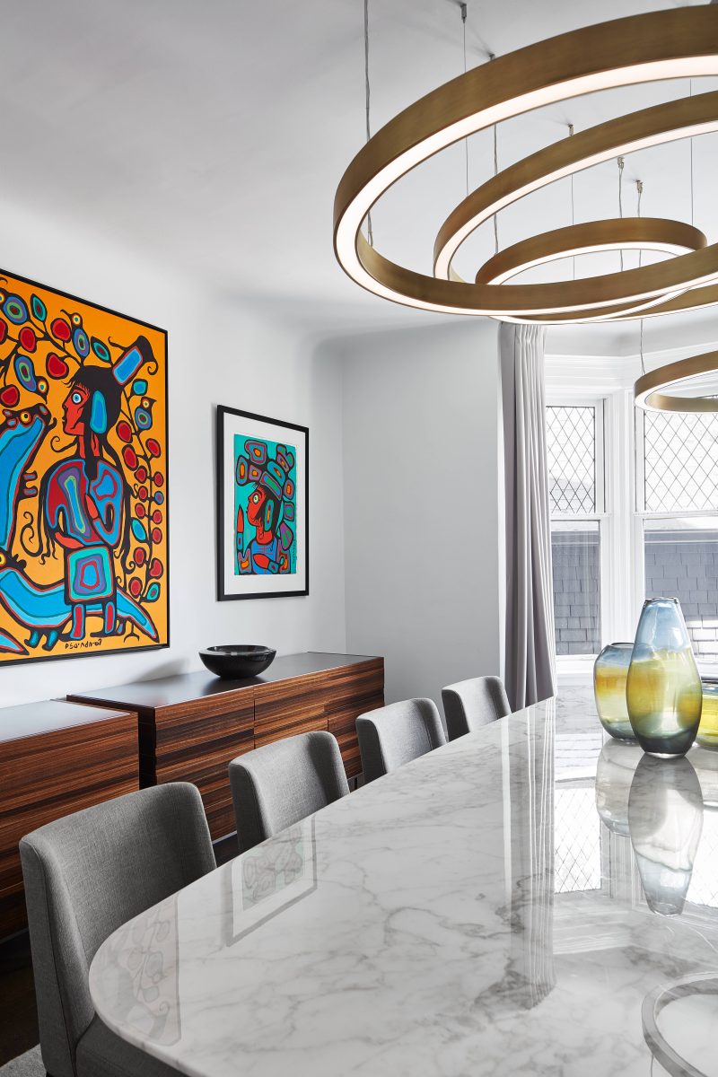 Originally an 80's spec town home with more stairs and landings than rooms. We used creative techniques to reduce the number of levels by 4. Our team successfully went through the heritage process in Rosedale to argue that the 80's palladian windows were not heritage and were able to replace them with 8ft high divided light windows on 2 floors of the front facade. We designed a new show stopping staircase from the basement to the third floor that had more gracious treads without excessive structural changes. We worked with well known designer Connie Breamar to seamlessly combine the architecture and the interiors.