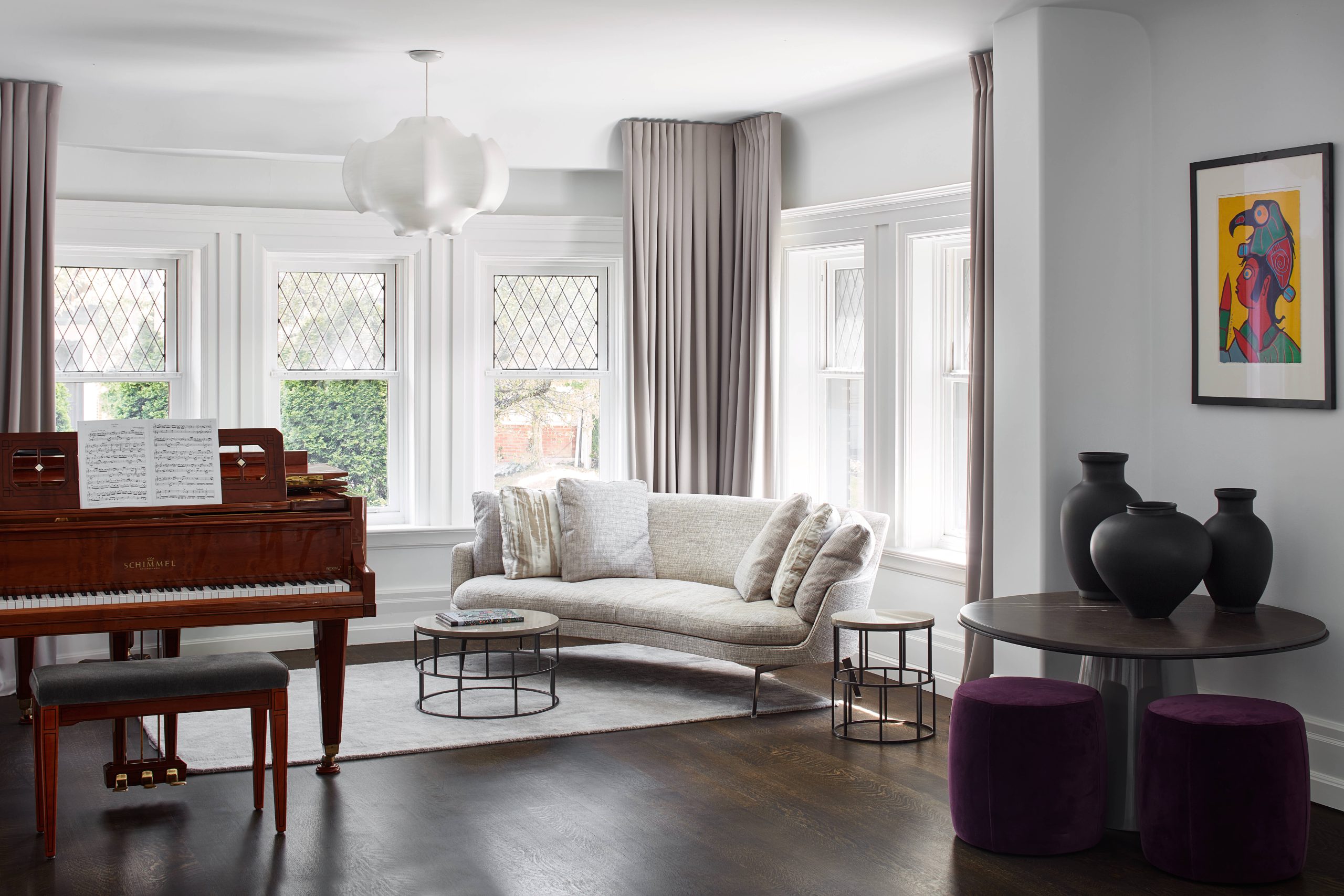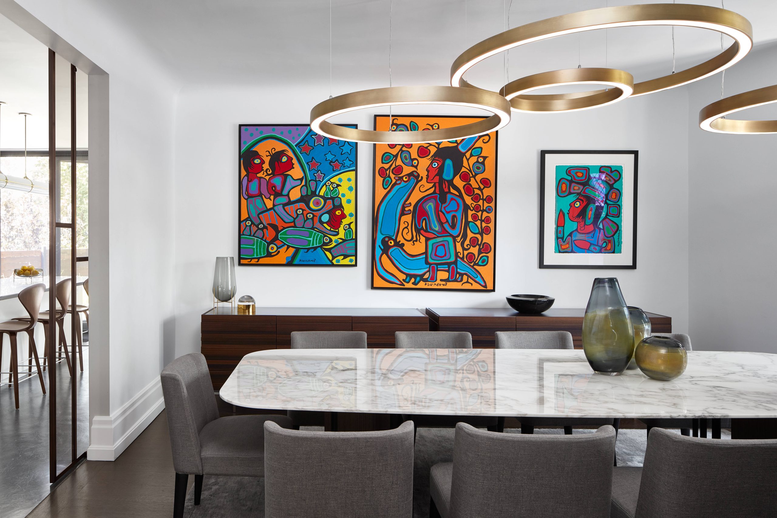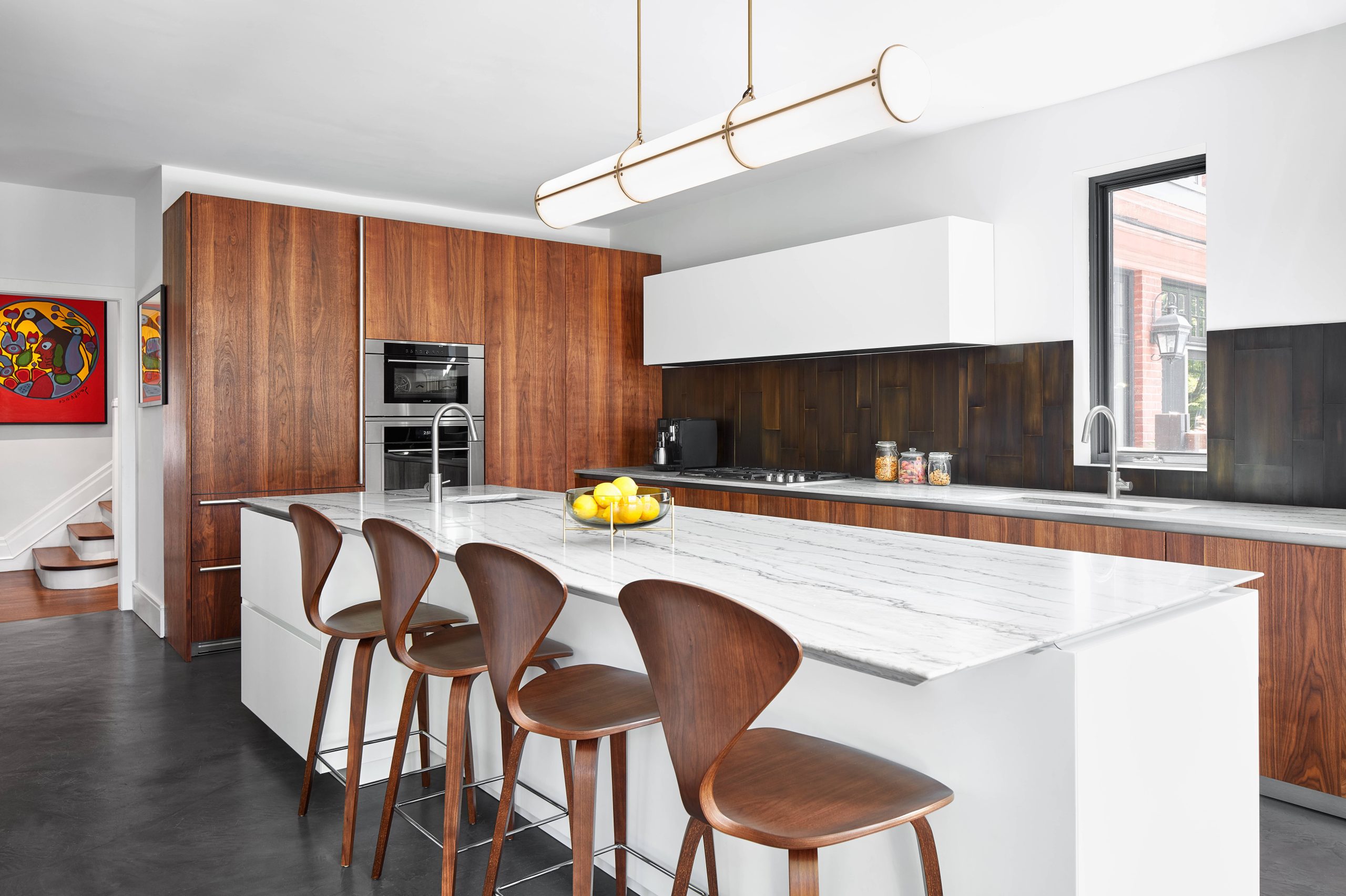 Originally an 80's spec town home with more stairs and landings than rooms. We used creative techniques to reduce the number of levels by 4. Our team successfully went through the heritage process in Rosedale to argue that the 80's palladian windows were not heritage and were able to replace them with 8ft high divided light windows on 2 floors of the front facade. We designed a new show stopping staircase from the basement to the third floor that had more gracious treads without excessive structural changes. We worked with well known designer Connie Breamar to seamlessly combine the architecture and the interiors.