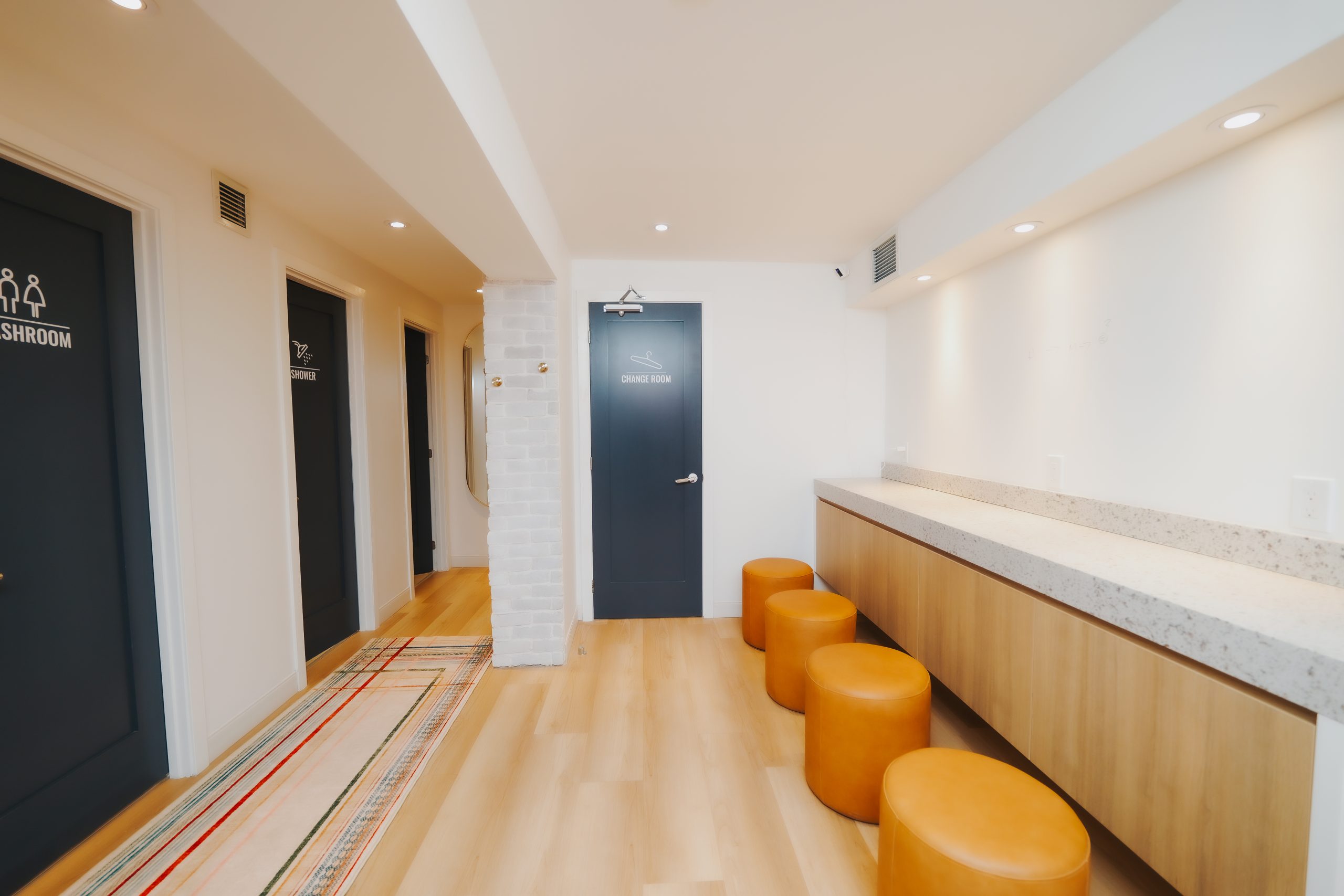 The yoga studio was designed to utilize every inch of an existing 1 storey former fireworks retail store in Leaside. The City of Toronto made errors in their interpretation of the building code which with the help of our favorite former buidling chief building examiner we were able to successfully overcome. The original brick building was in very poor condition and we were able to completely, airseal, insulate, and bring the building beyond code for a 45 person yoga studio. Working with Invision design we were able to not only provide an energy efficient 45 person studio but one with a beautiful aesthetic.